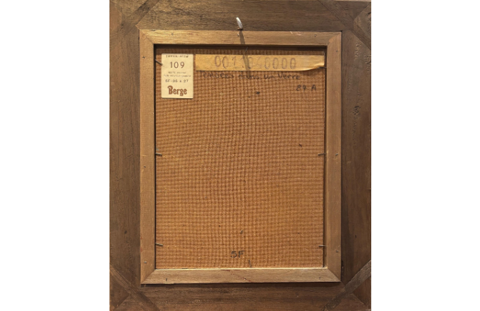 Photo du revers : support, étiquettes, inscriptions, restaurations.